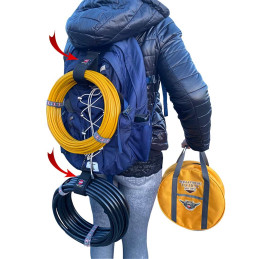 Ideal for organizing coaxial cables in operational situations such as POTA, QRP, SOTA, DX-pedition, etc; using the carabiner to hang them outside the backpack instead of inside, saving valuable operational space.