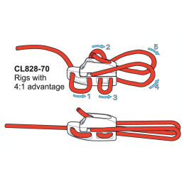 The Clamcleat® CL828-70 alloy Micros Aero cleat has a becket for rigging with a 4:1 ratio.