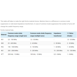 You can make excellent impedance transformers in the frequency range from 2 up to 50 MHz as well. Typical applications are end fed antenna impedance transformers, off center fed antenna impedance transformers or 1:1 Balun’s.