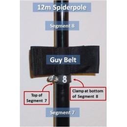 This strong guy belt is an ideal method for quickly attaching guy ropes to the pole. The belt is very flexible and lightweight and transfers the forces into the mast over a very large area, thus preventing damage.