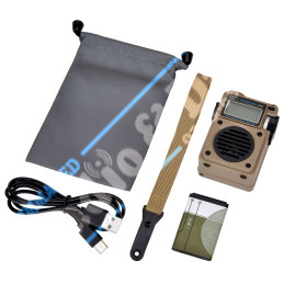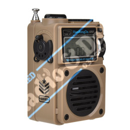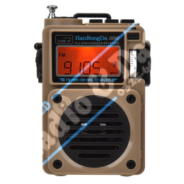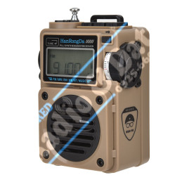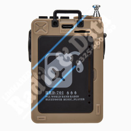 The HanRongDa HRD-701 is a very complete pocket sized world receiver with a digital display, many receiving bands, bluetooth speaker function and more. The radio comes with a soft carry bag, a hand strap and an USB-C type charging cable. Very compact size of only 90 x 38 x 61 mm. Color 'Desert Yellow'.