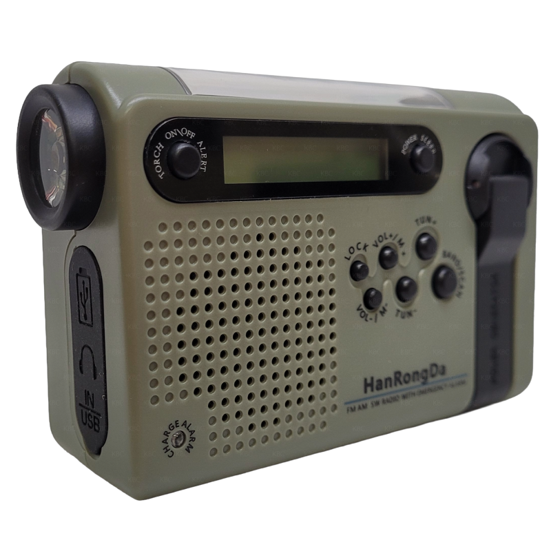 The HanRongDa HRD-900 Green is a compact and reliable emergency radio designed for use in critical situations and functions as a world receiver with AM, FM and SW bands.