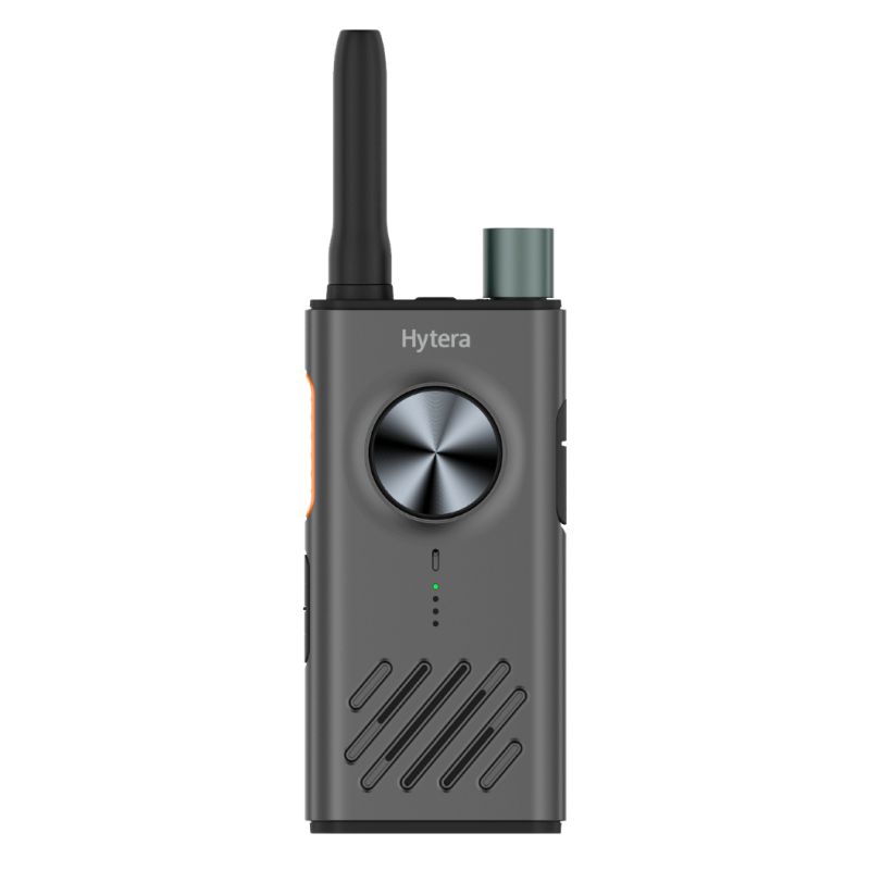 The Hytera S1 in metallic gray is a sleek professional UHF walkie-talkie for licensed use, a high-end solution ideal for supermarkets, warehouses, retail, shopping malls, and companies with multiple floors, among others, that require reliable, private, and professional communications. Its minimalist, elegant design makes it a modern and sophisticated choice.