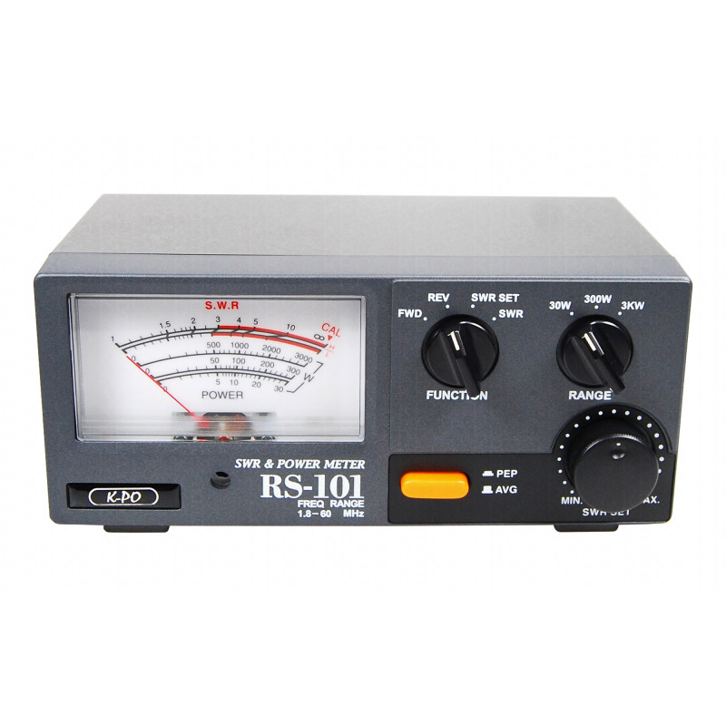 The K-PO RS-101 is a highly accurate SWR and Power meter for 1.6 - 60 MHz. For measuring Forward Power, Reflected Power and SWR. AVG / PEP switch to select average power or SSB / PEP. Maximum power handling of 3 kW, short time.