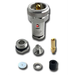 • In typhical UHF (PL259) threaded RF connectors it is necessary to fill the center conductor pin with melted solder, Evo's rounded Pin eliminates the problem of solder burrs. Sophisticated machining improves the opening of the plug's bottom and facilitates introduction of the cable's conductor.