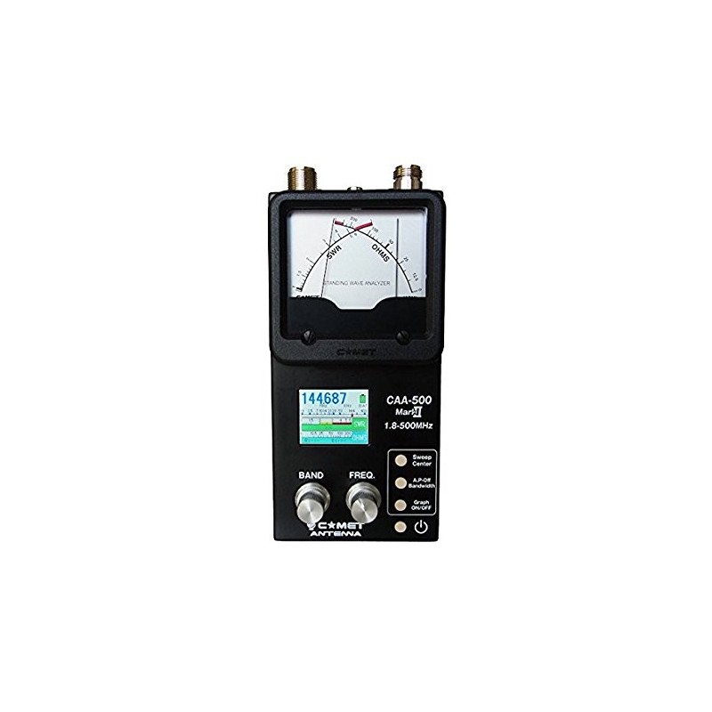 Den nya COMET CAA-500MarkII behåller den analoga skärmen och lägger till en fullfärgs TFT LCD-skärm som ger grafiska och numeriska SWR-värden tillsammans med total impedans med R och X-värden.