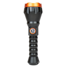 10 watt Crystal LED från ljusspecialisten Osram producerar tillsammans med den stora reflektorn en mycket starkt fokuserad ljusstråle som kan användas för att belysa även avlägsna föremål. Tack vare det välformade handtaget ligger F550 perfekt i handen. Strömbrytaren är placerad inom räckhåll för tummen och möjliggör snabb växling genom de tre ljusstyrkenivåerna 100 %, 50 % och 10 %. "SOS"-läget låter LED:n blinka som ett stroboskop med maximal ljusstyrka. Detta gör att du effektivt kan dra uppmärksamhet till dig själv i en nödsituation, även över långa avstånd.