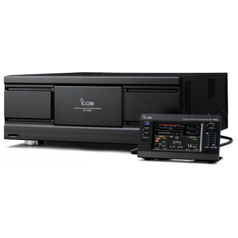 Icom IC-PW2 är ett slutsteg för kortvåg + 6m, byggd med mycket kraftfulla 65V LDMOS-transistorer.