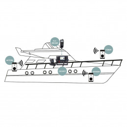 CT-M500 kan trådlöst anslutas (WLAN) och ger NMEA 2000™-anslutning och tvåvägs Hailer/PA-funktion. Trådlösa kopplingen möjliggör flexibilitet när det gäller att placera enheten närmare NMEA-anslutningspunkten.
