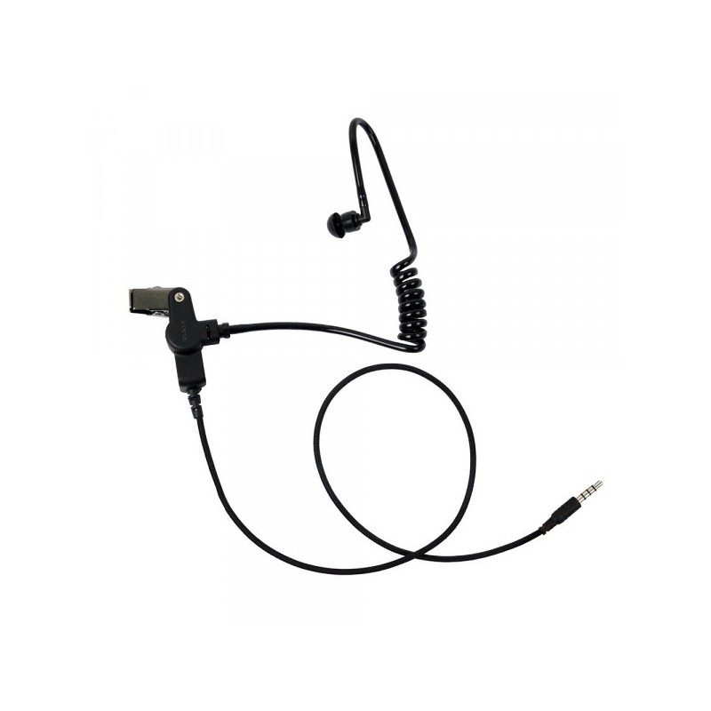 Öronmussla med luftslang, och svart spiralsladd med 3,5 mm gängad kontakt för Sepura monofon.