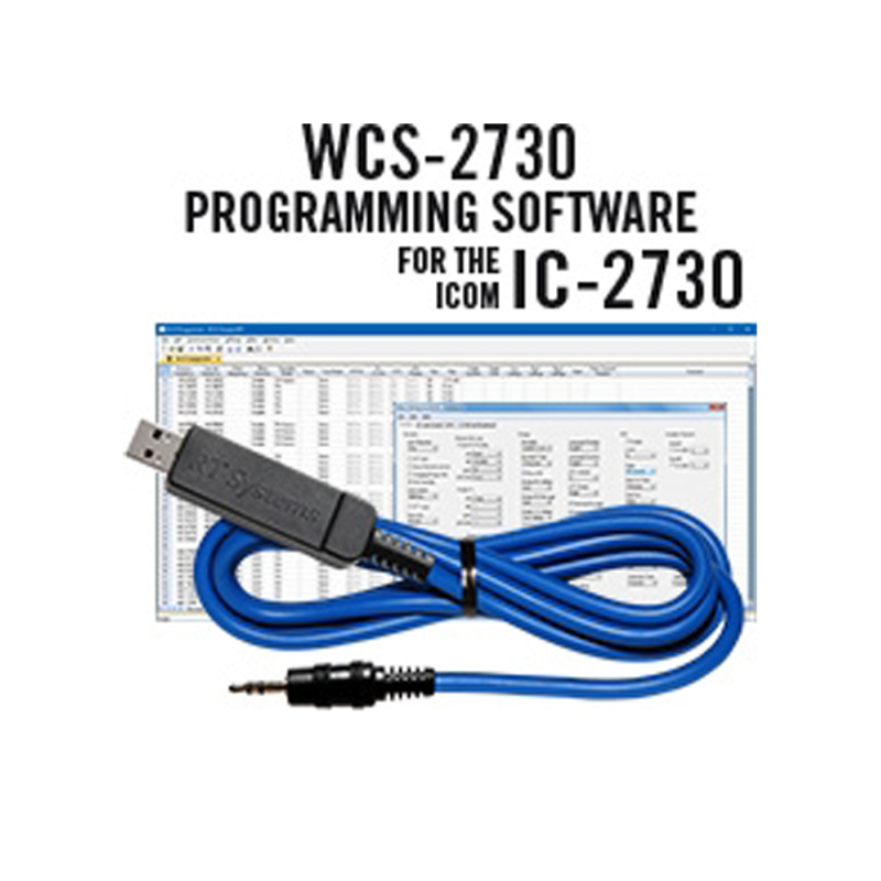 Komplett kit för programmering av Icom IC-2730, innehållande programvara för Windows och USB-kabel.