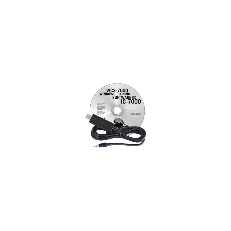 Komplett kit för programmering av Icom IC-7000, innehållande CD med programvara för Windows och USB-kabel.