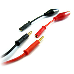 De guldpläterade krokodilklämmor kan separeras med upp till 120 mm (4½").
