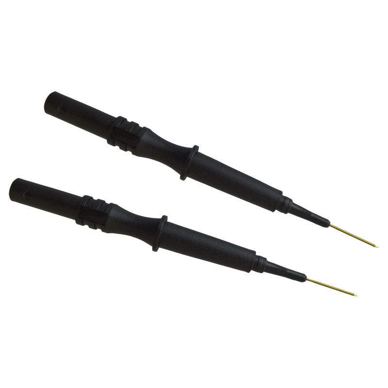Dessa guldpläterade nålar har Peak standard 2 mm hylsor, vilket gör att de kan monteras på industristandard 2 mm bananpluggar.