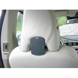 Fästet placeras på framsätets nackstöd. Du kan montera det själv på ett par minuter, monteringsanvisning medföljer. Fästets monteringsplatta har förborrade hål som underlättar vid monteringen av en hållare.