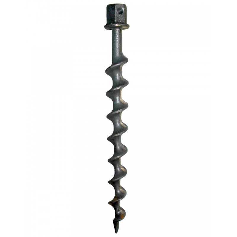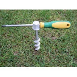 Kör skruven i marken & skruva sedan ned den med en nyckel av storleken 24 eller med en stor skruvmejsel (används som hävstång genom 8mm hålet).